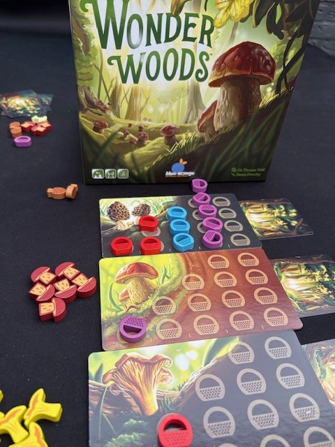 In Wonder Woods, you’ll wander around the forest and pick as many mushrooms as possible. With multiple baskets full, you score a lot of points, but are there really that many points? You’ll only find out at the end.