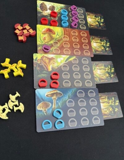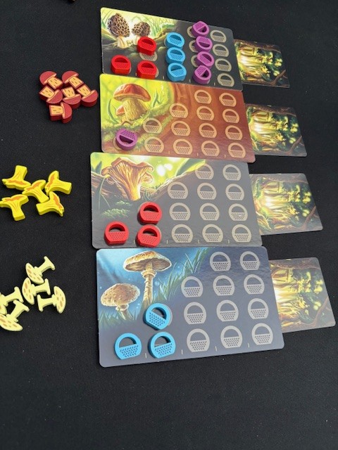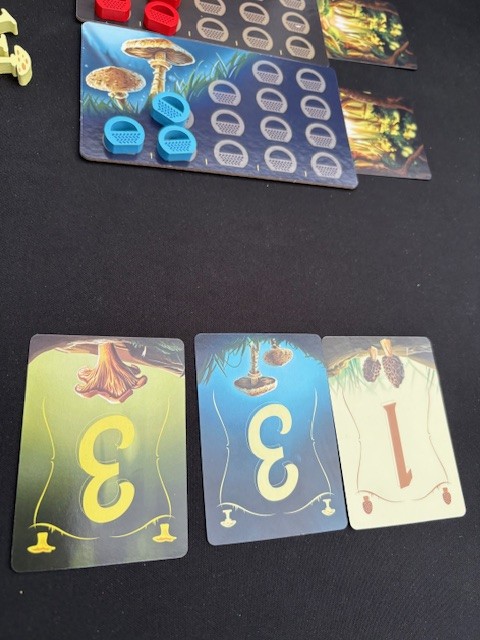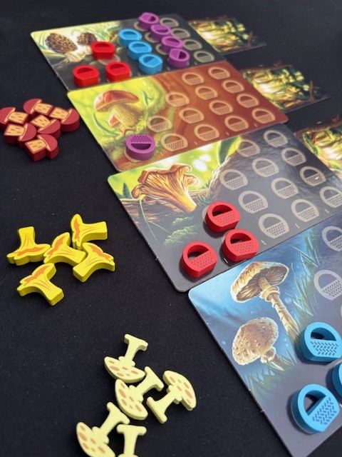 Iedereen pakt zijn mandjes van de paddenstoel tegels en we beginnen opnieuw met kolommen vullen. Na bonus voor de meerderheid per soort, mag je weer een extra mandje kopen. Dit doe je net zo lang totdat er van 2 soorten paddenstoelen geen tokens meer zijn. Dan is het spel afgelopen en volgt de grote onthulling.