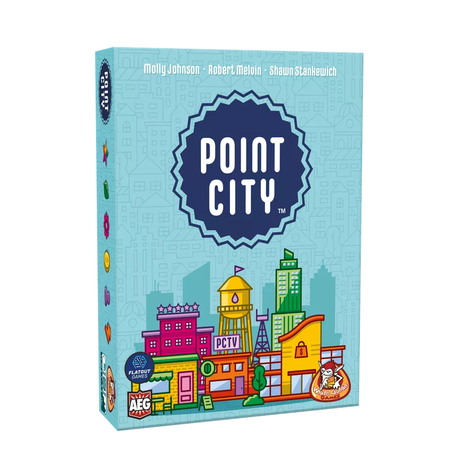 In Point City moeten de spelers middelen verzamelen om een stad te bouwen. Of je nou met 2 of met 4 spelers speelt, je hebt altijd 17 beurten om je stad te bouwen en daarmee zoveel mogelijk punten binnen te halen. Ook in dit spel, wie de meeste punten heeft,